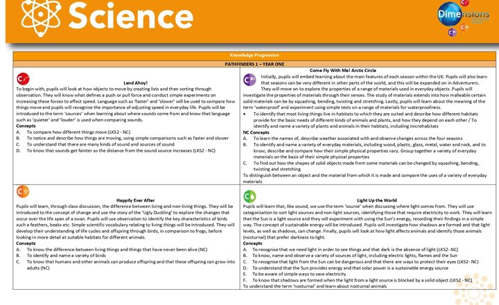 Science Year 1 overview