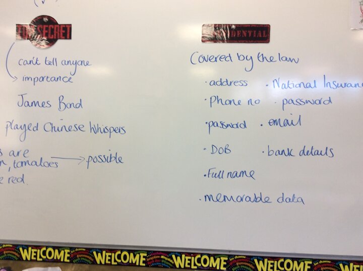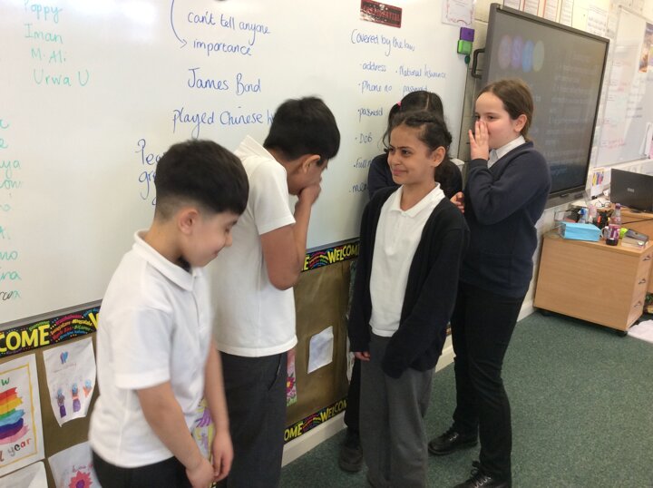 5H have been thinking about the differences between a top secret and confidentiality. We played Chinese Whispers and had an amazing time acting out scenarios.