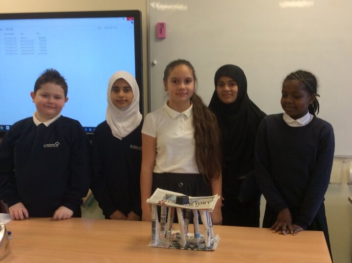 To build a bridge using only newspaper and sellotape which is more that 10cm high and can hold at least 500g.