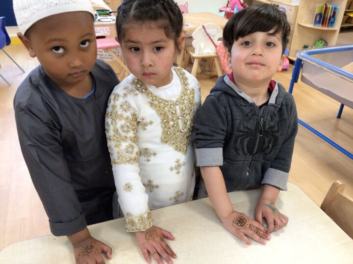 The children in Nursery enjoyed an Eid Party. All of the children were able to do some dancing, have a mehndi pattern, eat some party food and have a drink. It was lots of fun!