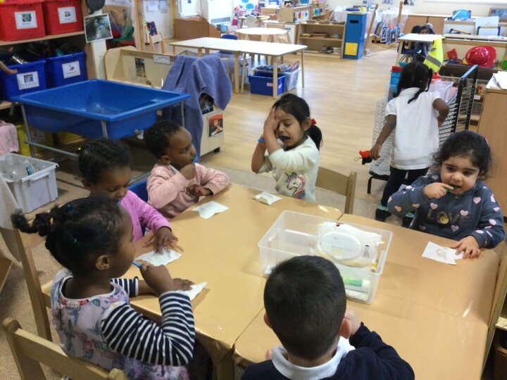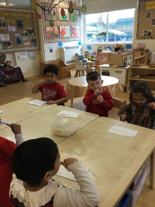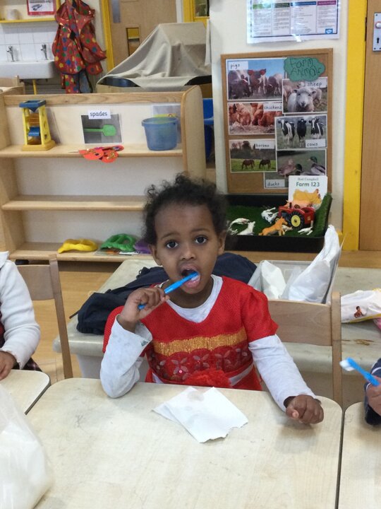 Learning to brush our teeth at Nursery