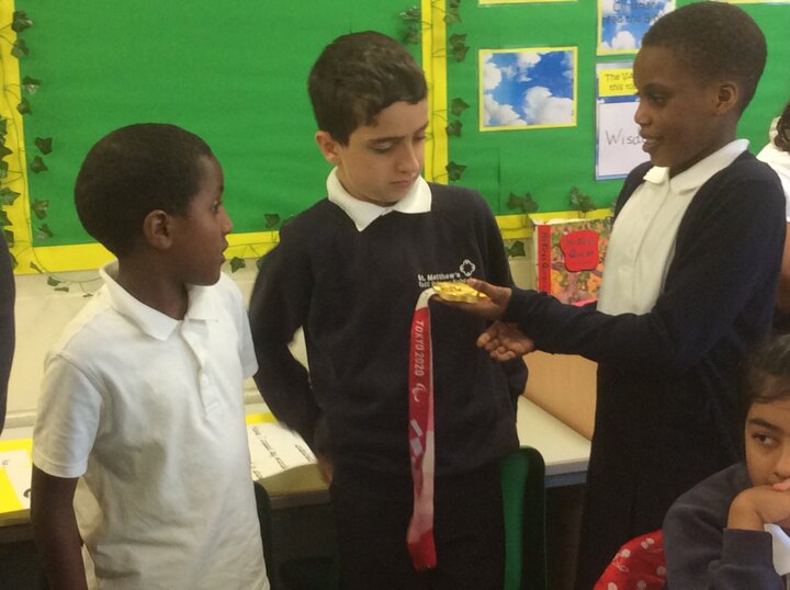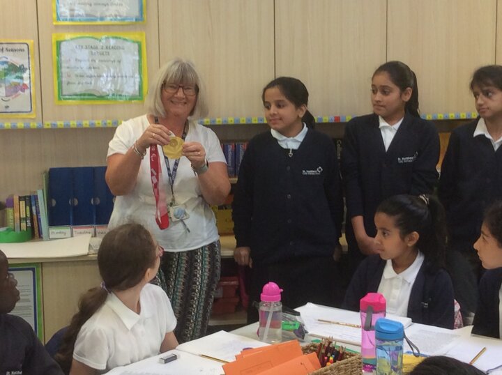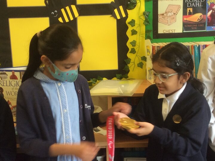 Matt Rotherham visited school, bringing his gold medal won at the Tokyo 202 Paralympics. Matt pilots a tandem for Neil Fachie. They won gold in the 1km time trial in a new world record. Matt talked about his experience and then brought his medal round to each class.