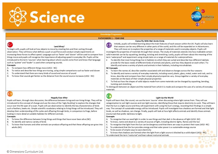 Science Year 1 overview