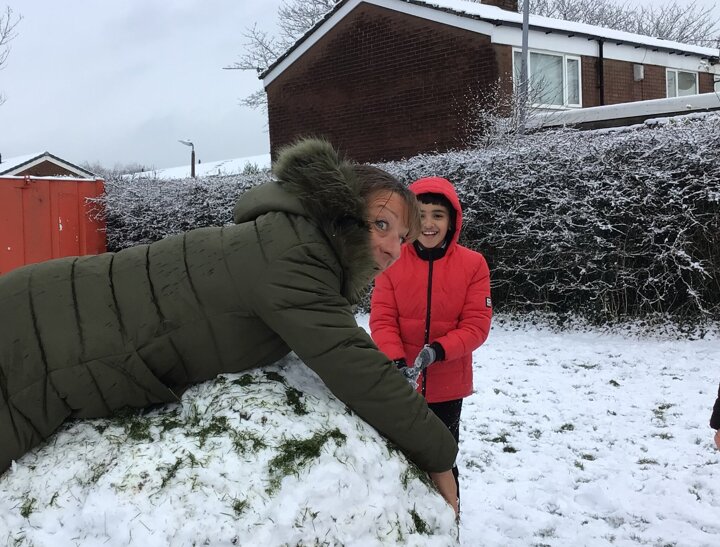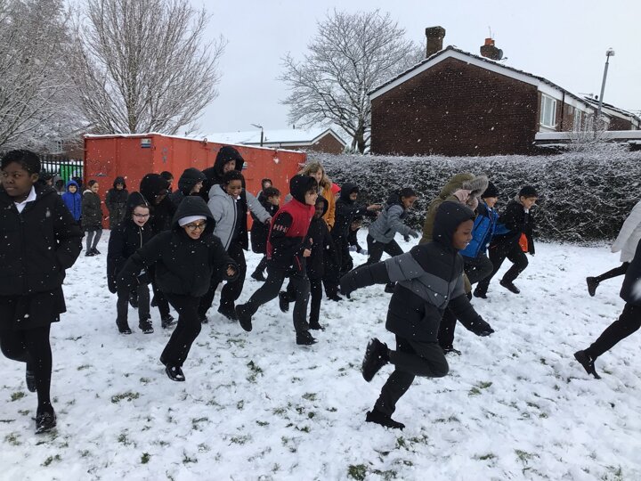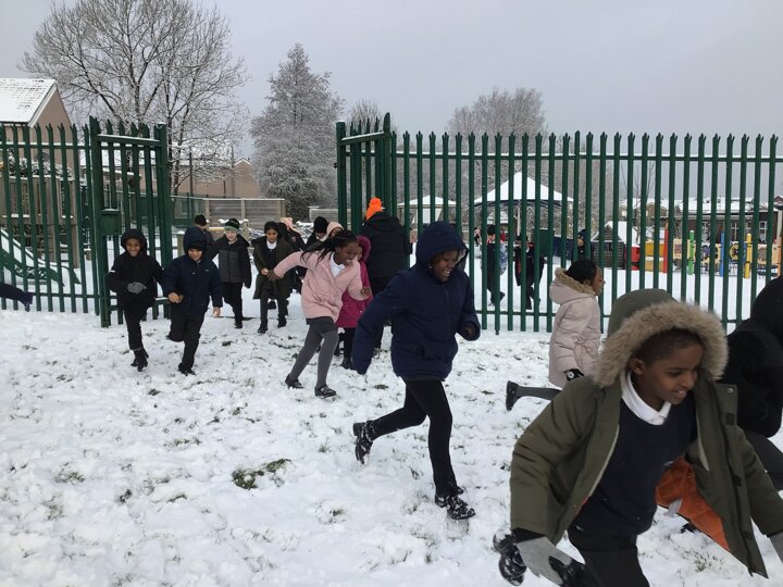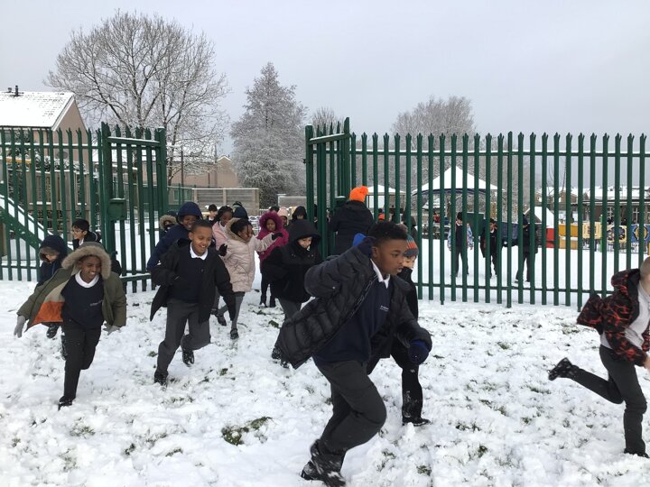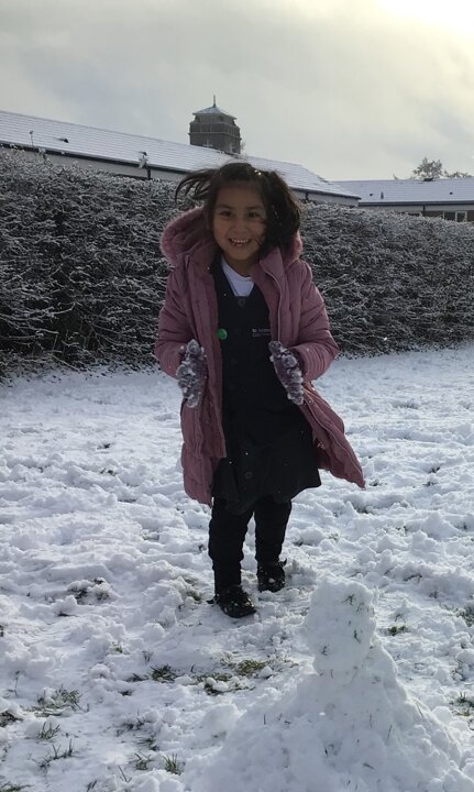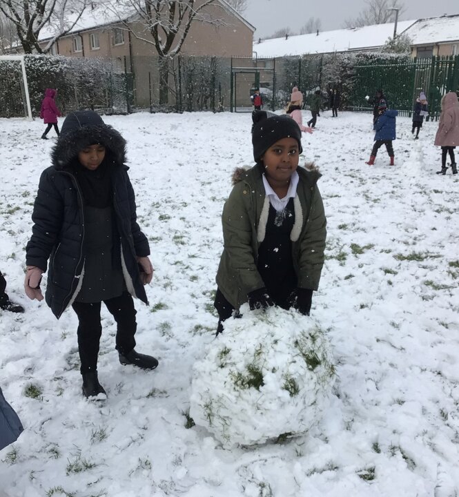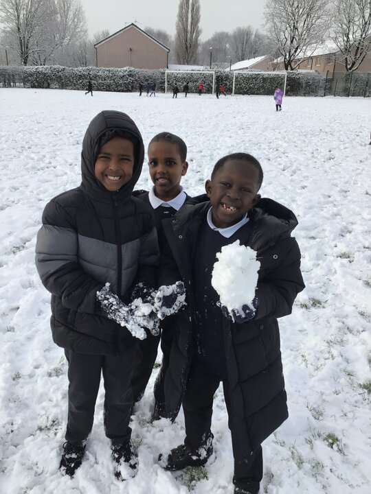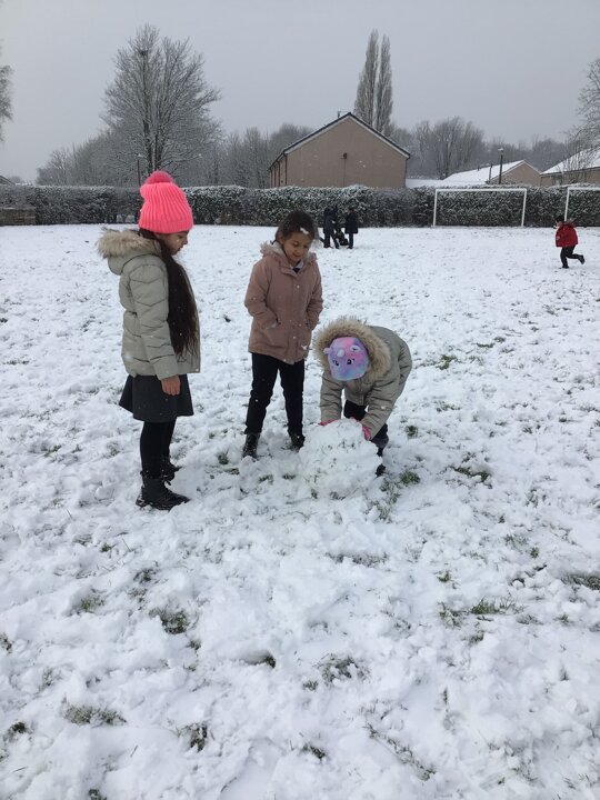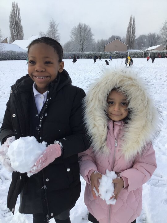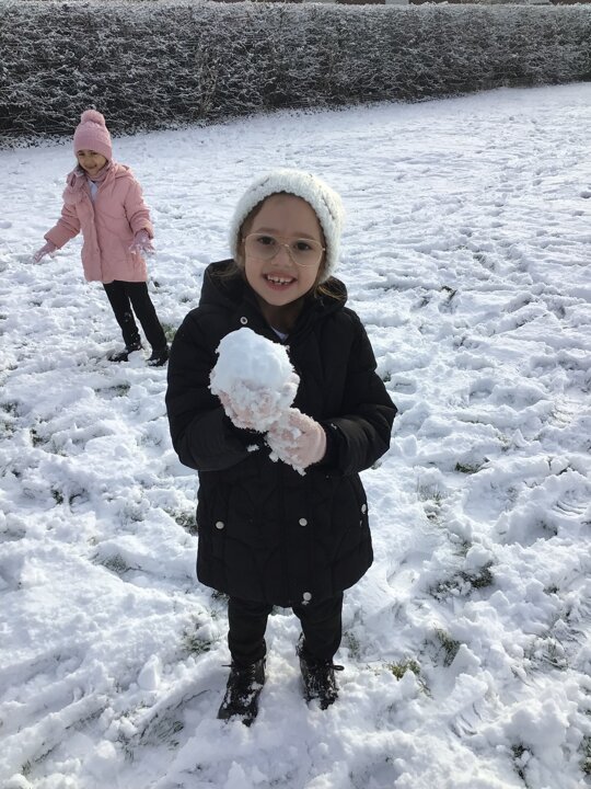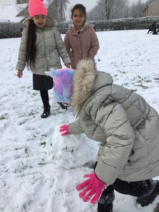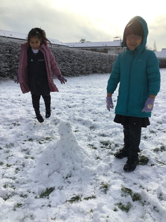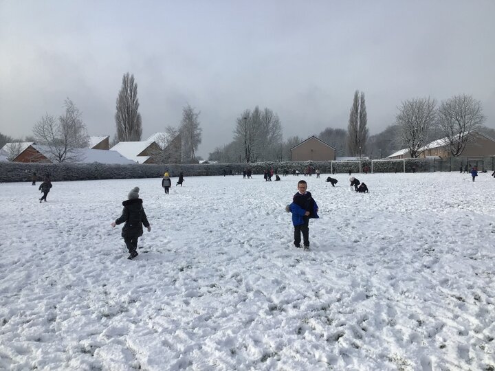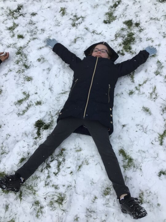 We were amazed to see how much snow fell this morning. We all went out on the field and so much fun playing in it.