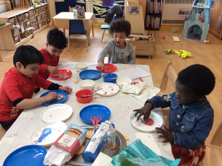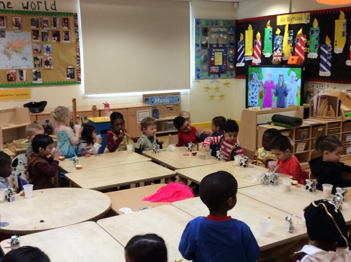 We were very busy celebrating British Values and Comic Relief's Red Nose Day last week. We enjoyed voting for our favourite cartoons and watching the one which was most popular because that was fair. We iced biscuits with red, white and blue icing and decorations and had a special story called 'Share' to help us learn about other people's feelings and taking turns. On Red Nose Day we had a Princesses' and Pirates' party and lots of special food to eat together. We enjoyed celebrating with our friends.