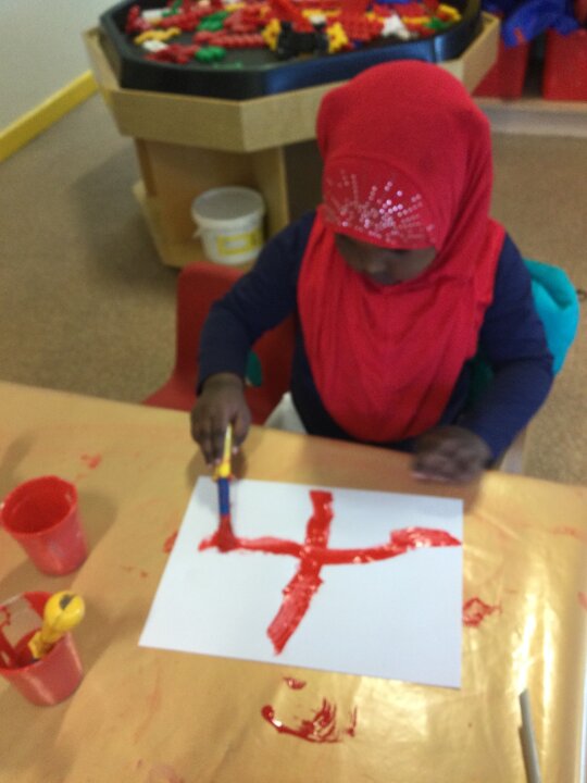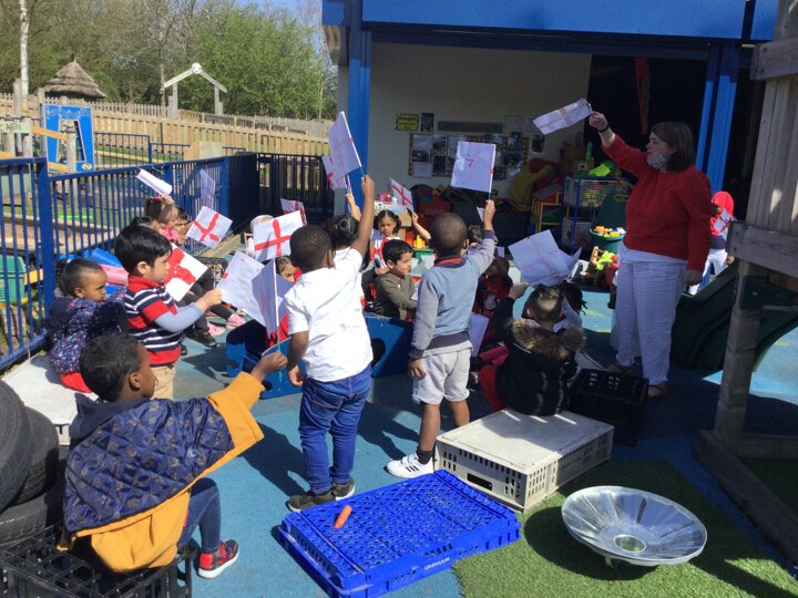 We celebrated this special day by acting out the story of St George and the dragon and making flags to wave as we sang our 'Happy St. George's Day' song together in the sunshine.