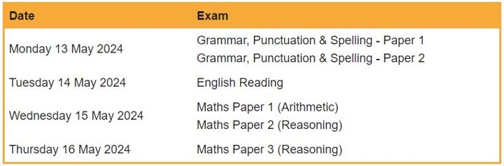 Year 6 2023/2024 SATs time table